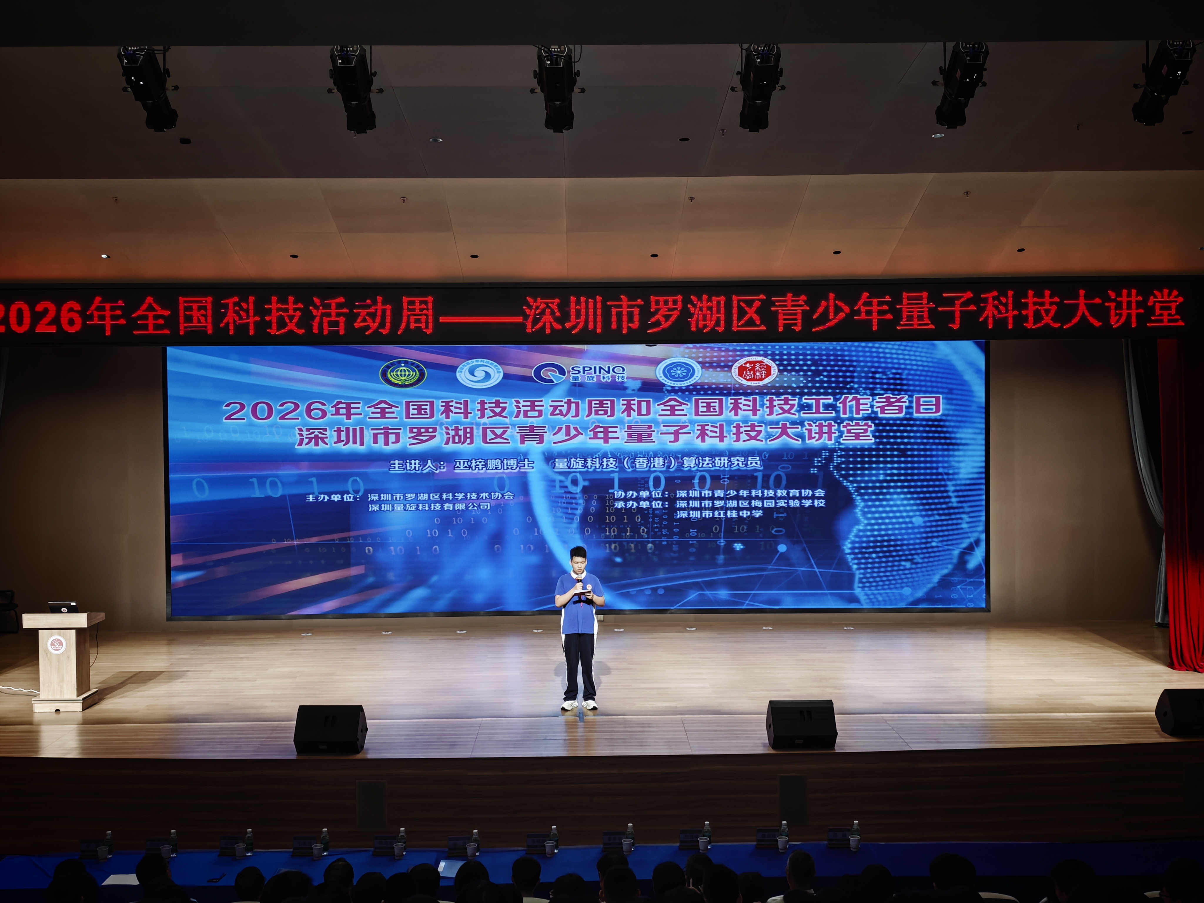 2026年是“十五五”开局之年,也是深入推进科技强国建设的关键之年。为深入贯彻落实科技部、中央宣传部、中国科协《关于举办 2026 年全国科技活动周和全国科技工作者日活动的通知》精神,紧扣奋进 “十五五” 科技谱新篇年度主题,大力弘扬科学家精神,推动前沿量子科技科普进校园、厚植青少年科学素养、培育未来量子科技人才,深圳市罗湖区积极响应科技部、中央宣传部、中国科协号召,于4月20日下午在梅园实验学校报告厅举办“2026年全国科技活动周深圳市罗湖区青少年量子科技大讲堂暨量子科技社团孵化活动”。